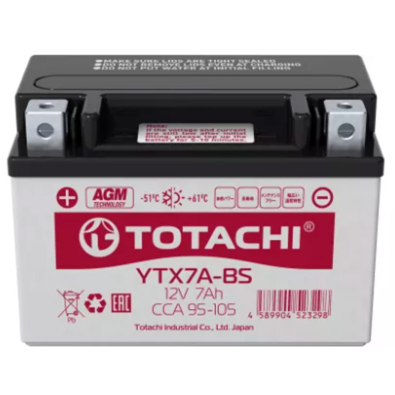 Главная / Каталог автомобильных товаров / Аккумуляторы / Аккумуляторы для мотоциклов / АКБ мото TOTACHI AGM 12V 7 а/ч YTX7A-BS 95-105А п.п. 148х86х93 90007 в Тюмени