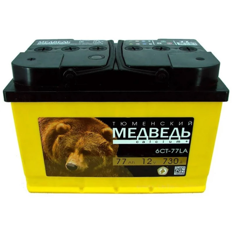 Купите аккумулятор АКБ Тюменский медведь 77 а/ч 730A п.п. Са/Са SILVER 278х175х190 6СТ77VLA1. Цена 0 рублей. Также в каталоге 13 моделей аккумуляторных батарей Тюменский Медведь и аккумуляторы других производителей.