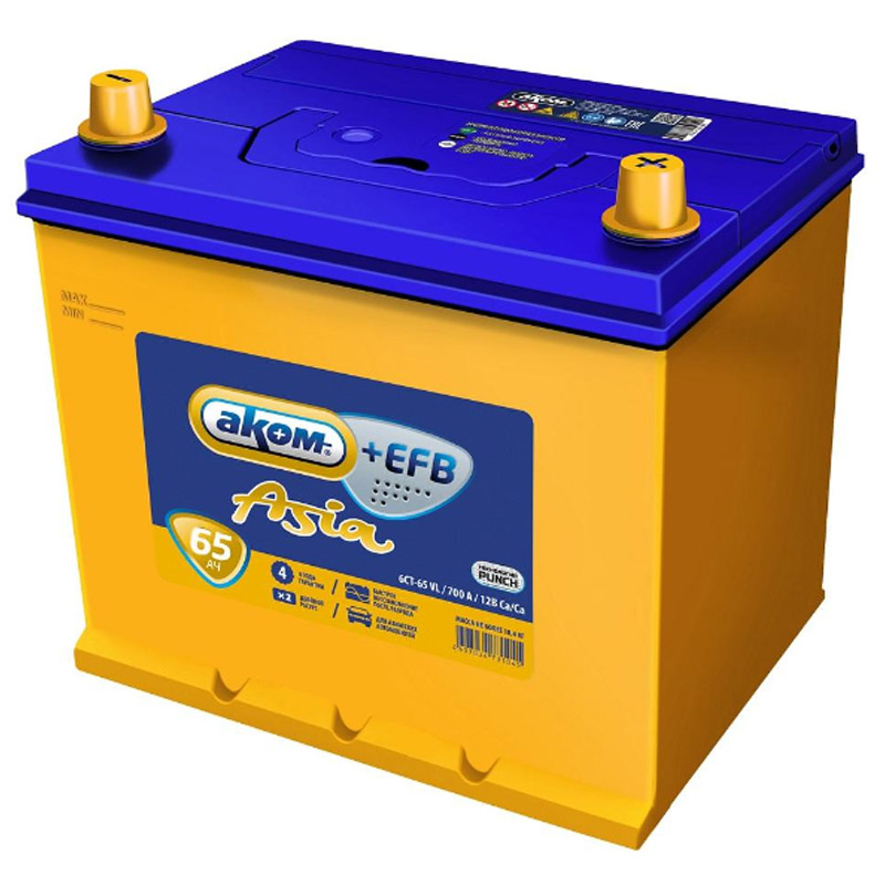 Купите аккумулятор АКБ АКОМ Asia EFB VL Euro 65 А/ч 700А 231х178.5х225 о.п. 4607034731502. Цена 9860 рублей. Также в каталоге 65 моделей аккумуляторных батарей Аком и аккумуляторы других производителей.