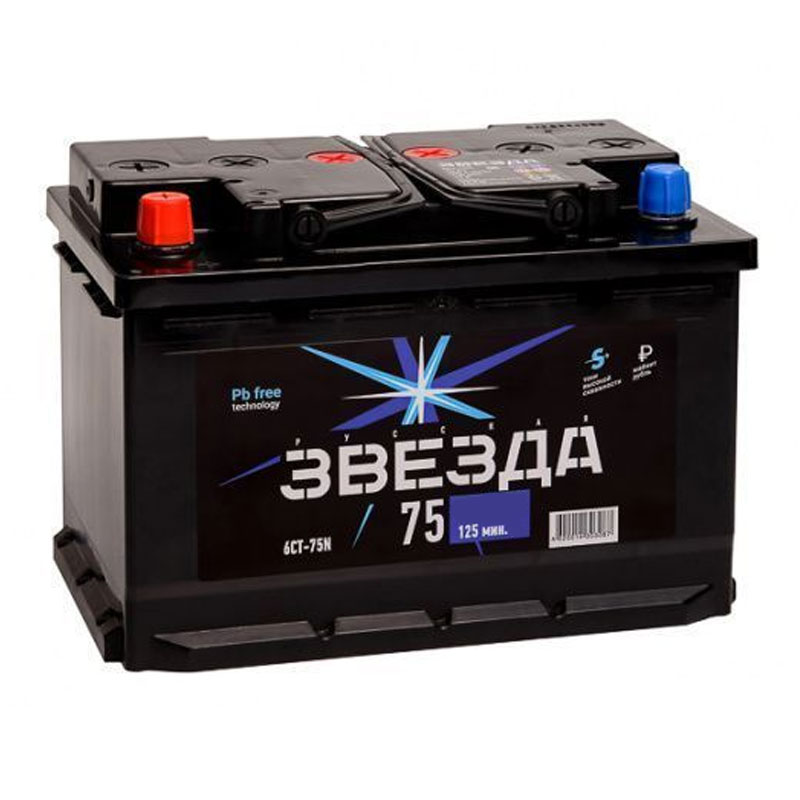 Главная / Каталог автомобильных товаров / Аккумуляторы / Автомобильные аккумуляторы / АКБ Русская Звезда 75А/ч о.п. ток 600 277х175х190 в Тюмени