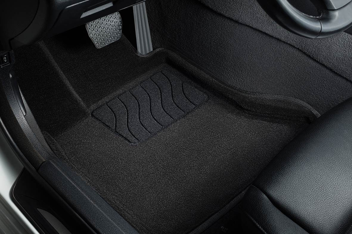 Красивый внешний вид, уникальное сочетание текстильного покрытия и объемного повторения пола салона. Коврики выполнены из трехслойного материала: вспененная основа покрыта ворсом снаружи и антискользящей пленкой с обратной стороны. Для увеличения срока службы, на водительском коврике под каблуком водителя имеется подпятник. Коврики хорошо моются.