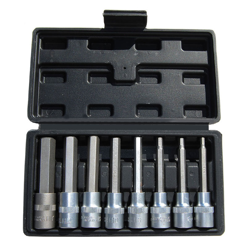 Главная / Каталог автомобильных товаров / Автоинструменты и оборудование / Головки, биты / Набор головок Автодело со вставкой Hex 8 пр. 1/2" 5-17 мм L=100 мм в кейсе 39400 в Тюмени