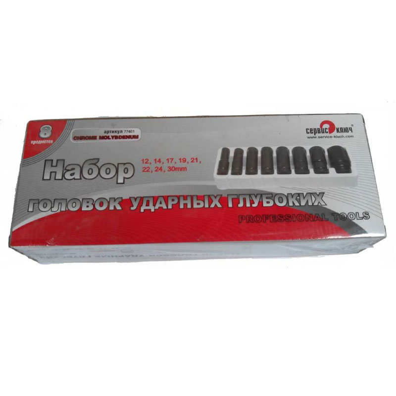 Главная / Каталог автомобильных товаров / Автоинструменты и оборудование / Головки, биты / Набор головок Сервис Ключ ударных глубоких 1/2"" 8 пр. 6 гр. 12-30 мм 77401 в Тюмени