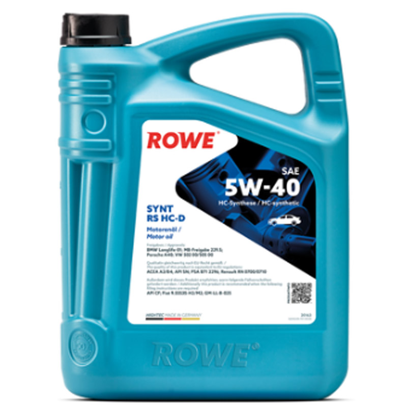 Купите синтетическое моторное масло Rowe 5/40 Hightec Synt ACEA A3/B4,API SN RS HC-D синтетическое 5 л 20163-0050-99 цена 6764 рублей. В наличии моторные масла 5W-40 от производителей: AUTOBACS, Bardahl, Elf, Ford, G-Energy, HI-GEAR, Idemitsu, Kixx, LADA, LiquiMoly, Mannol, Micking, Mirax, MITSUBISHI, Mobil, Motul, Mozer, Neste, NGN, NISSAN, RAVENOL, RIXX, ROLF, ROWE, Shell, Sintec, Takayama, TOTACHI, Total, TOYOTA, Unix, Valesco, Wezzer, ZIC, Газпромнефть, Лукойл, Роснефть. Также в наличии синтетические масла 5W-40, масла для универсальный (бензиновый и дизельныых типов двигателей.