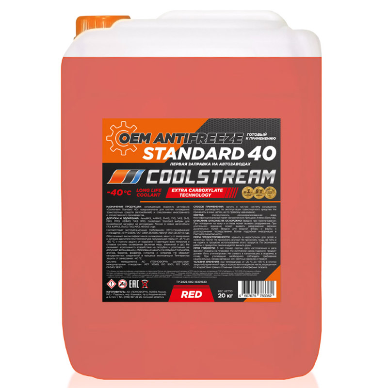 Технические характеристики товара «Антифриз CoolStream Standart (-40°С) (20 кг) красный CS-010204-RD»