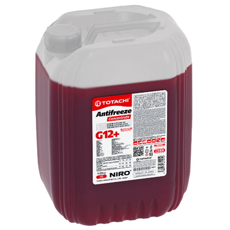 TOTACHI NIRO ANTIFREEZE Red G12+ требует разбавления с деминерализованной водой в необходимой пропорции (см. таблицу) для обеспечения защиты от замерзания Подходит для многих современных автомобилей, средненагруженной строительной и сельскохозяйственной техники с требованиями применения охлаждающих жидкостей на основе неорганической / карбоксилатной технологии присадок и длительным сроком службы.