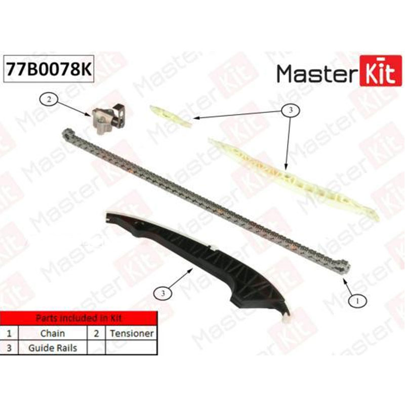 Технические характеристики товара «Комплект цепи ГРМ MasterKit VAG 1.8TFSI CABA,CDHA,CABB,CDHB без звездочек 77B0078K»