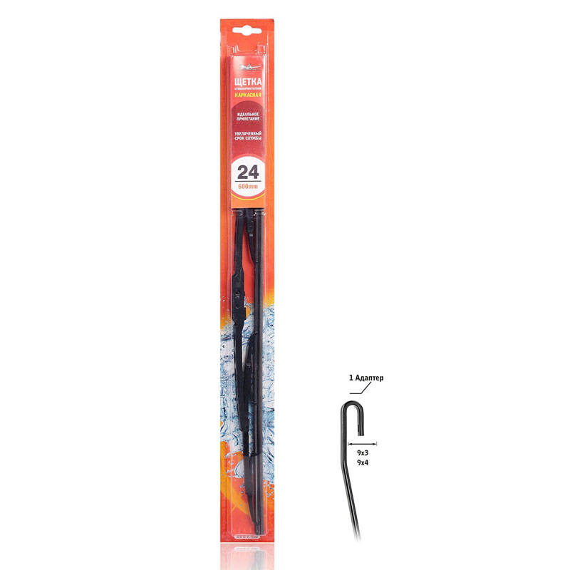 Каркасная конструкция щетки стеклоочистителя — это качество, проверенное десятилетиями. Такие щетки являются самыми доступными по цене, обладает высокой прочностью, и лучшими показателями прилегания резинок к стеклу автомобиля. К классической форме щетки производители AIRLINE добавили изменения в составе резины, позволяющие продлить ее срок использования. В комплект добавлен адаптер подходящий для крепления: "крючок" HOOK 9x3/9х4 для установки на самые распространенные марки автомобиля.