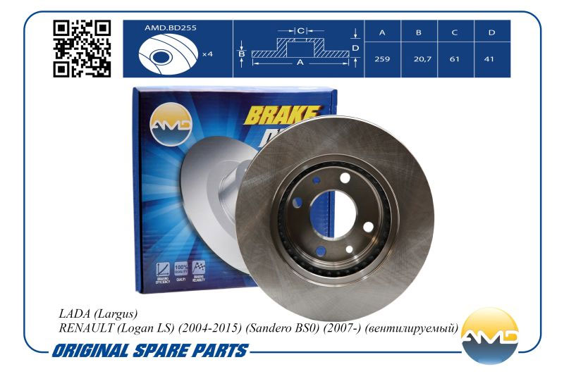 Технические характеристики товара «Диск тормозной передний AMD AMDBD255»