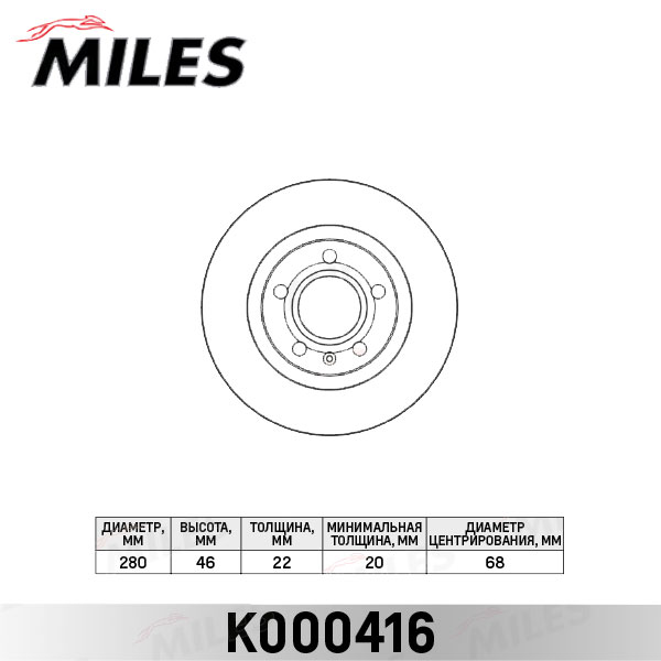 Технические характеристики товара «Диск тормозной передний MILES K000416 (TRW DF2806)»