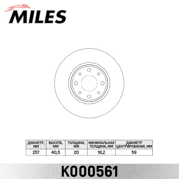 Технические характеристики товара «Диск тормозной передний MILES K000561 (TRW DF2686)»