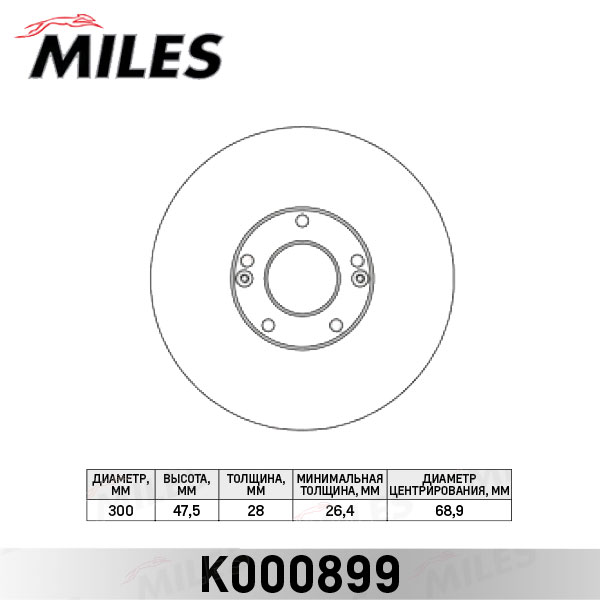 Технические характеристики товара «Диск тормозной передний MILES K000899 (TRW DF4957S)»