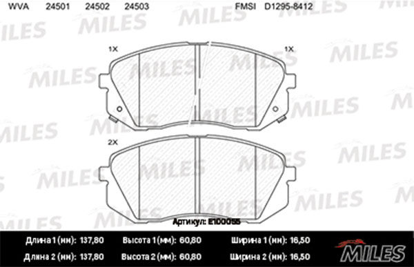 Технические характеристики товара «Тормозные колодки передние MILES E100055»