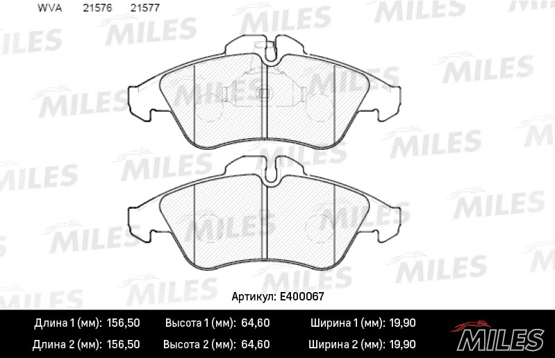 Технические характеристики товара «Тормозные колодки передние MILES E400067»