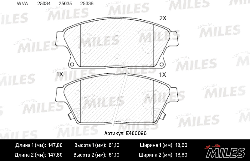 Технические характеристики товара «Тормозные колодки передние MILES E400096»