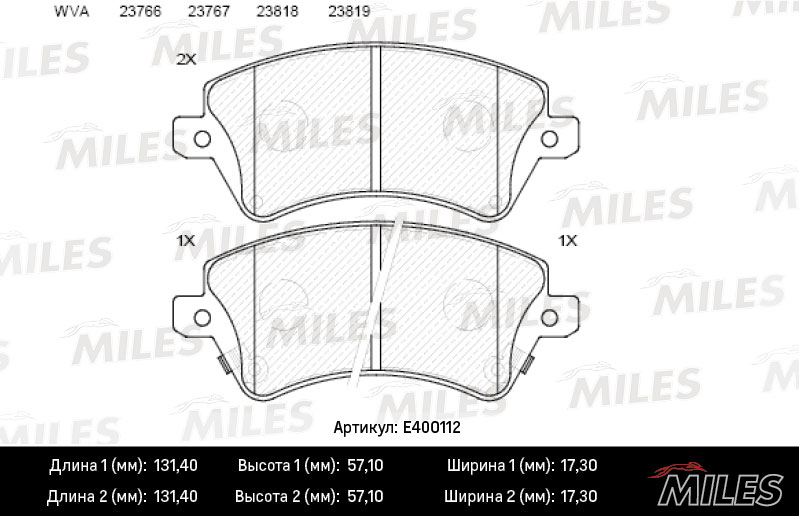 Технические характеристики товара «Тормозные колодки передние MILES E400112»