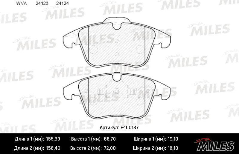 Технические характеристики товара «Тормозные колодки передние MILES E400137»