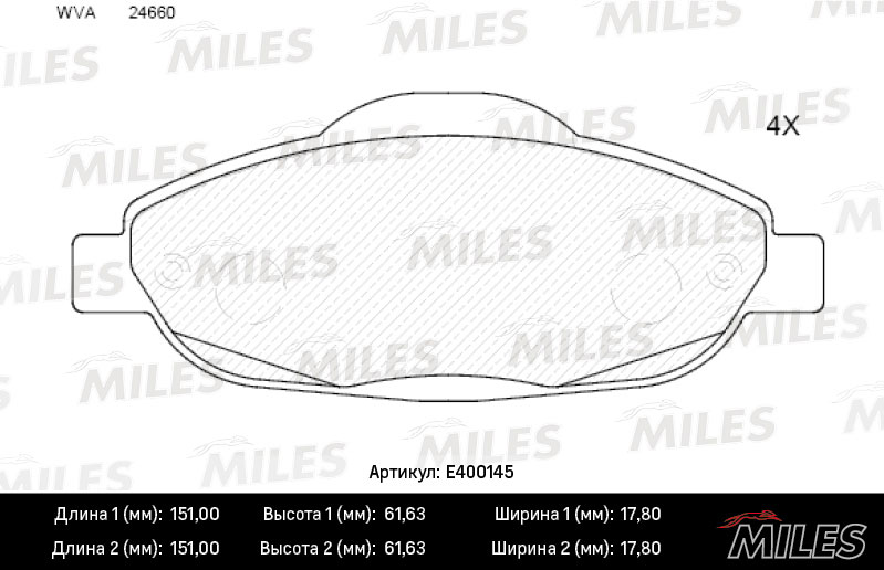 Технические характеристики товара «Тормозные колодки передние MILES E400145»