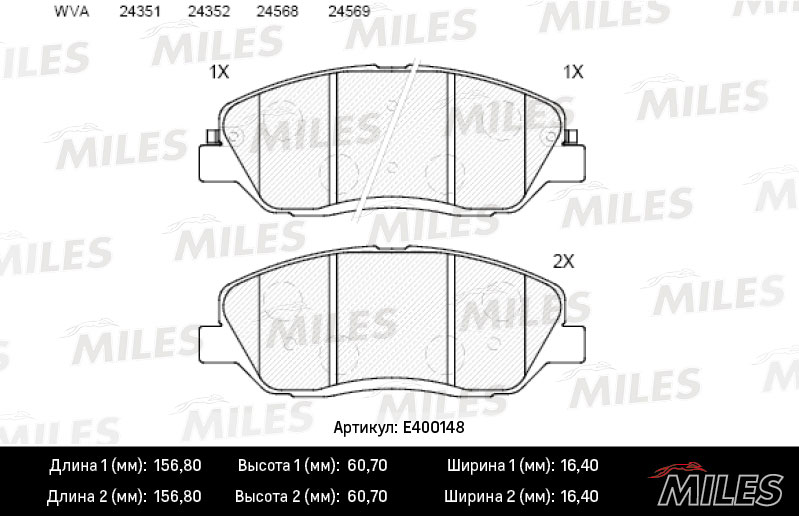 Технические характеристики товара «Тормозные колодки передние MILES E400148»