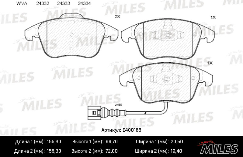 Технические характеристики товара «Тормозные колодки передние MILES E400186»