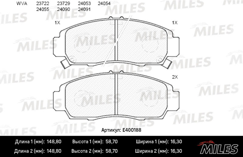 Технические характеристики товара «Тормозные колодки передние MILES E400188»