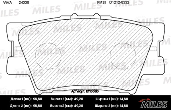 Технические характеристики товара «Тормозные колодки задние MILES E110060»