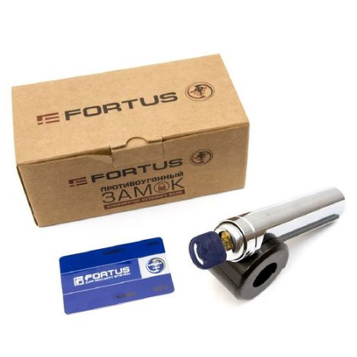 Замок рулевого вала «FORTUS» - механическое противоугонное устройство, предназначенное для блокировки рулевого вала с целью предотвращения несанкционированного управления автомобилем. Конструкция блокиратора рулевого вала «FORTUS» представлена двумя основными элементами: муфтой, скрепляемой винтами на рулевом валу, и штырем, вставляющимся в пазы муфты и блокирующим вращение рулевого вала. Замок рулевого вала «FORTUS» блокирует рулевой вал в положении штатной фиксации рулевого колеса. Для блокировки рулевого вала штырь вставляется в пазы муфты до характерного щелчка. Разблокировка осуществляется поворотом ключа в цилиндре замка на 90° и последующим вытягиванием штыря из пазов муфты.