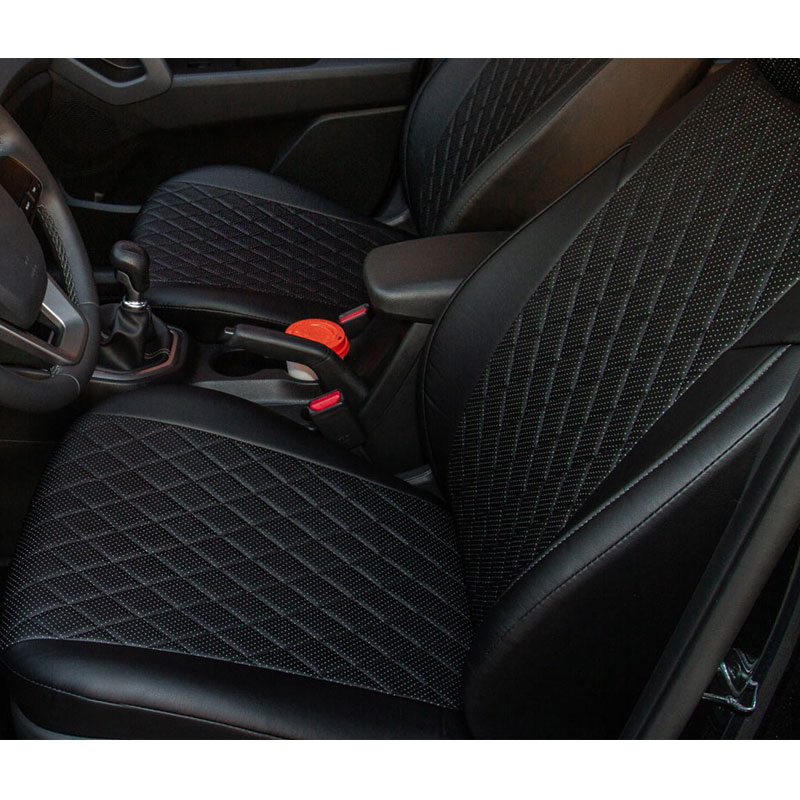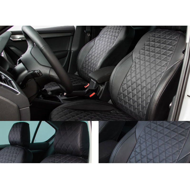 Презентабельный внешний вид. Чехлы, изготовленные из экокожи, выглядят элегантно и стильно. Благодаря чехлам салон автомобиля приобретает и респектабельный внешний вид.