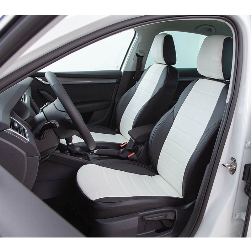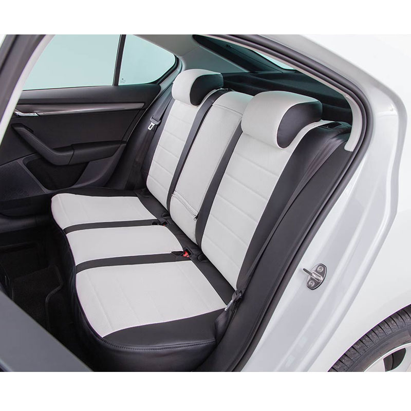 Презентабельный внешний вид. Чехлы, изготовленные из экокожи, выглядят элегантно и стильно. Благодаря чехлам салон автомобиля приобретает и респектабельный внешний вид.