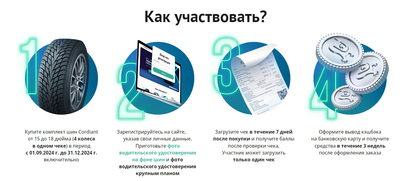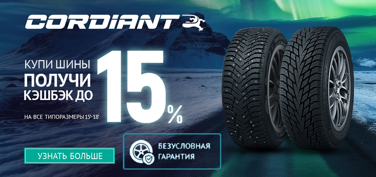 17 сентября 2024 года запустилась акция Cashback за покупку шин Cordiant.