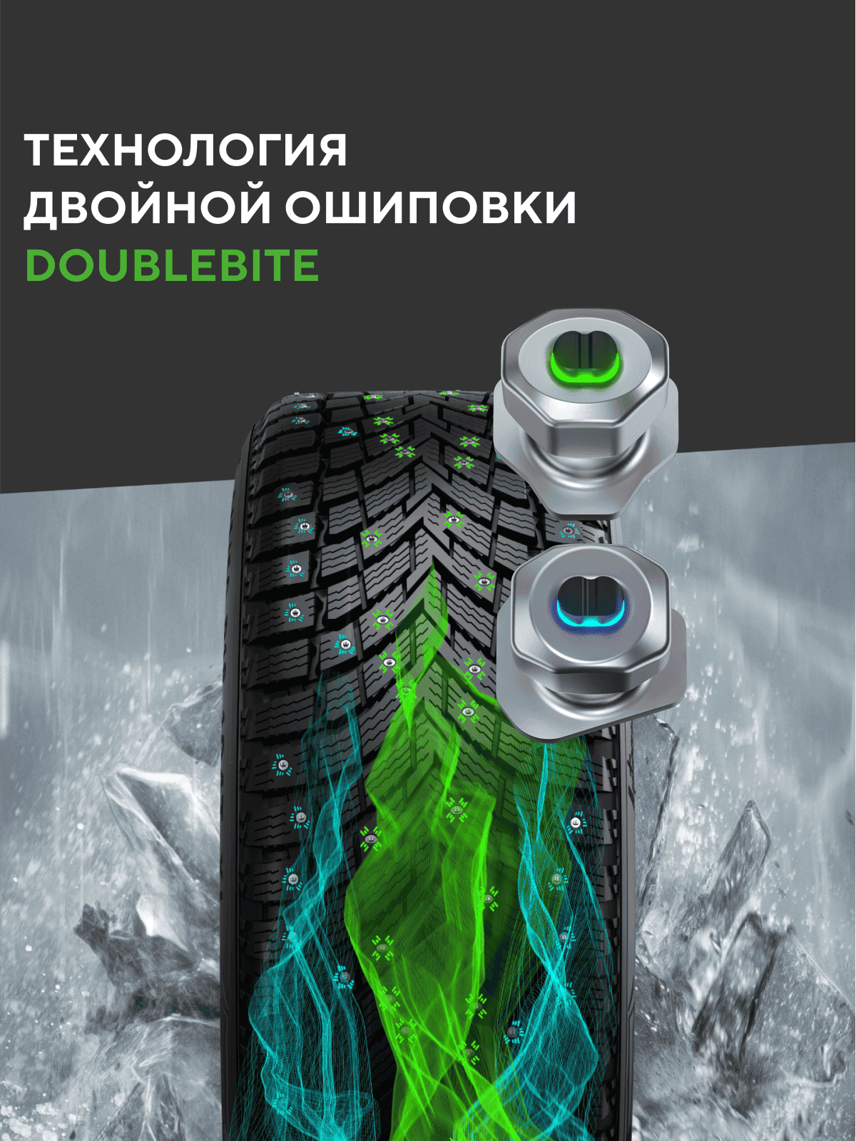 Технология двойной ошиповки DoubleBite с инновационной формой сердечника обеспечивает уверенное сцепление на зимних дорогах.