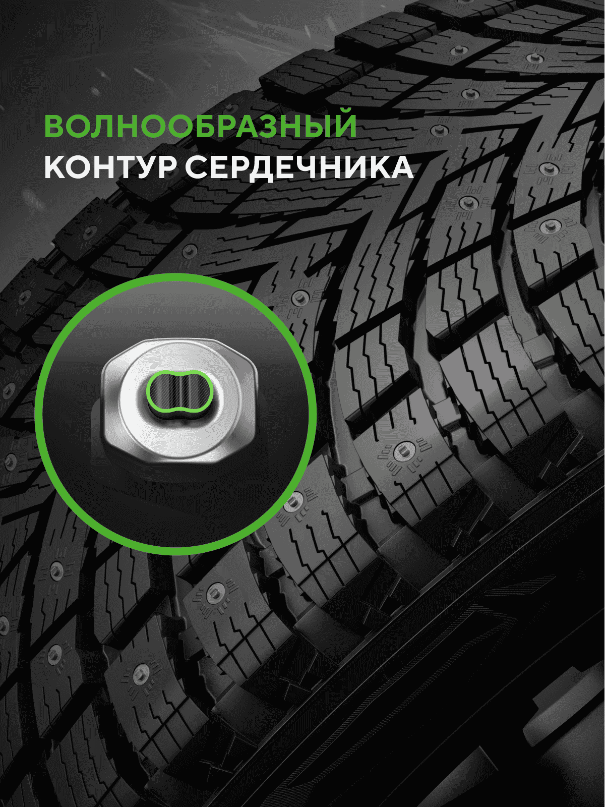 Надежное сцепление на льду - прочная и надежная двойная ошиповка DoubleBite в сочетании с инновационной формой сердечника обеспечивают надежное сцепление как при разгоне и торможении, так и в поворотах на льду и снегу. Усиленная фиксация шипов значительно продлевает период эксплуатации шин. Качественные материалы повышают износостойкость шины и сохраняют надежное сцепление даже в суровых зимних условиях.